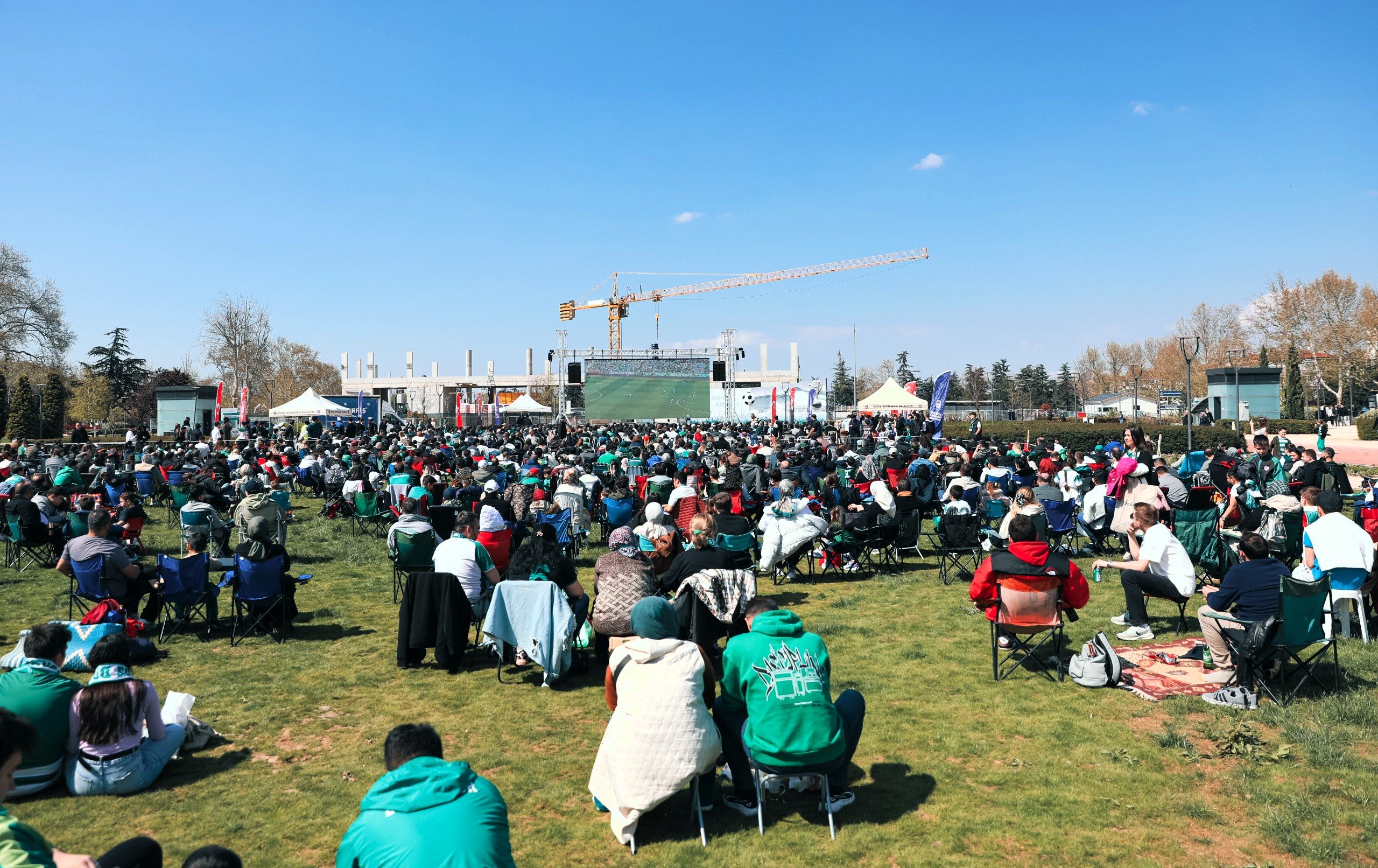 Bursa Büyükşehir Belediyesi de şampiyonluk yolunda yaşanan heyecanın tüm şehirle birlikte paylaşılması amacıyla Kültürpark Eski Atatürk Stadyumu girişi Millet Bahçesi’nde kurduğu dev ekranla her yaştan Bursaspor taraftarını bir araya getirdi.
