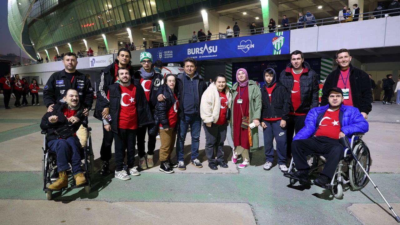 Maç boyunca büyük heyecan ve coşku yaşayan engelli bireyler milli maçı stadyumdan izlemelerini sağlayan Osmangazi Belediye Başkanı Erkan Aydın’a teşekkür etti.