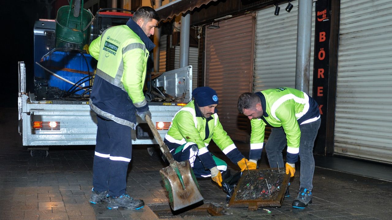 Yaya trafiğinin yoğun olarak yaşandığı Kapalıçarşı bölgesinde gece saatlerinde yoğun mesai harcayan Büyükşehir Belediyesi ekipleri, mazgalları tek tek açarak biriken kâğıt, yaprak, izmarit, kum, taş gibi atık ve yabancı maddeleri topladı.