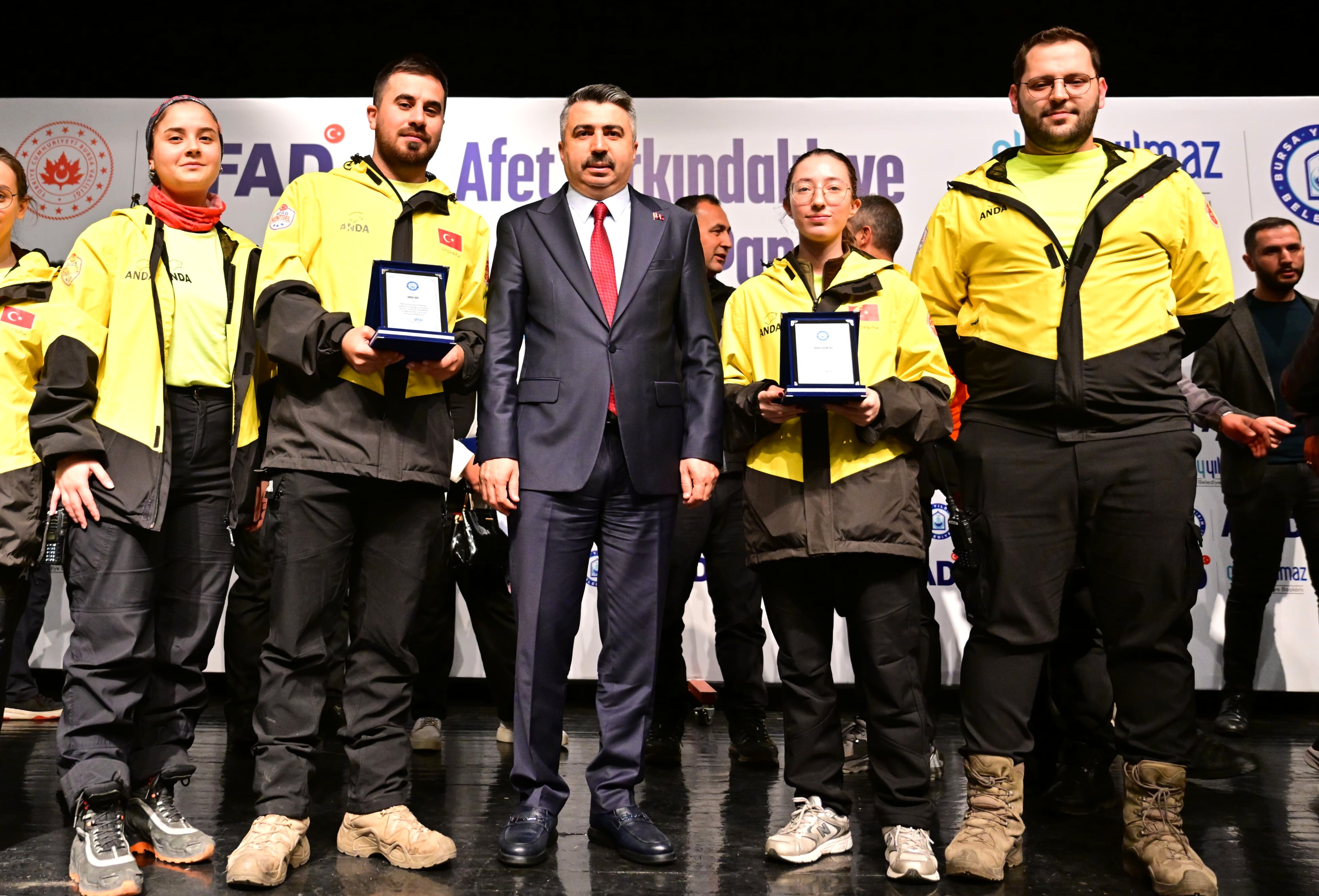 Ayrıca, afete hazırlık ve müdahale süreçlerine katkı sağlayan gönüllü STK arama kurtarma ekiplerine de plaket takdimi gerçekleştirildi.