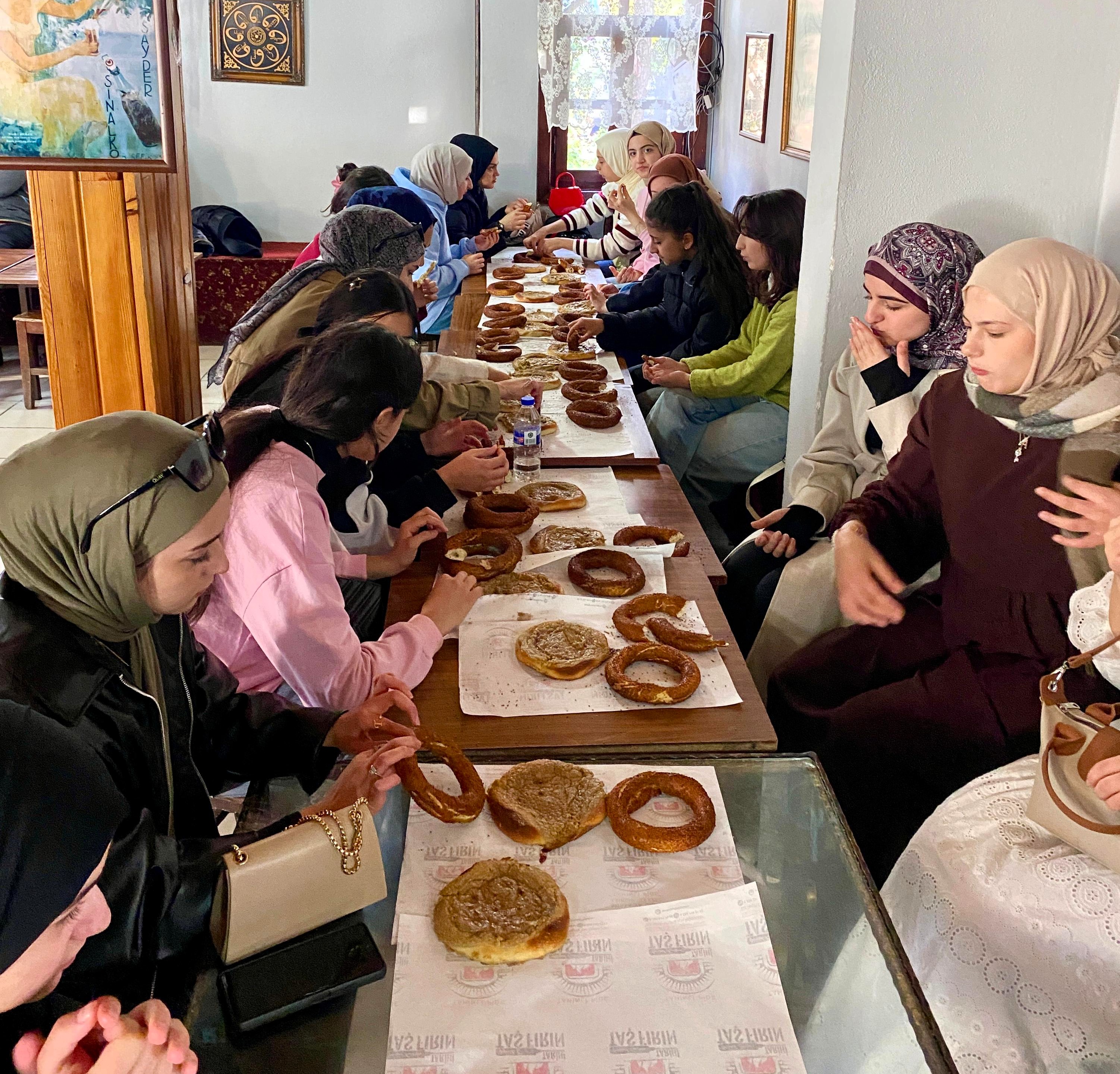 Tarihi gezinin sonunda ise öğrencilere geleneksel hale gelen çay, simit ve tahanlı ikramı yapıldı.