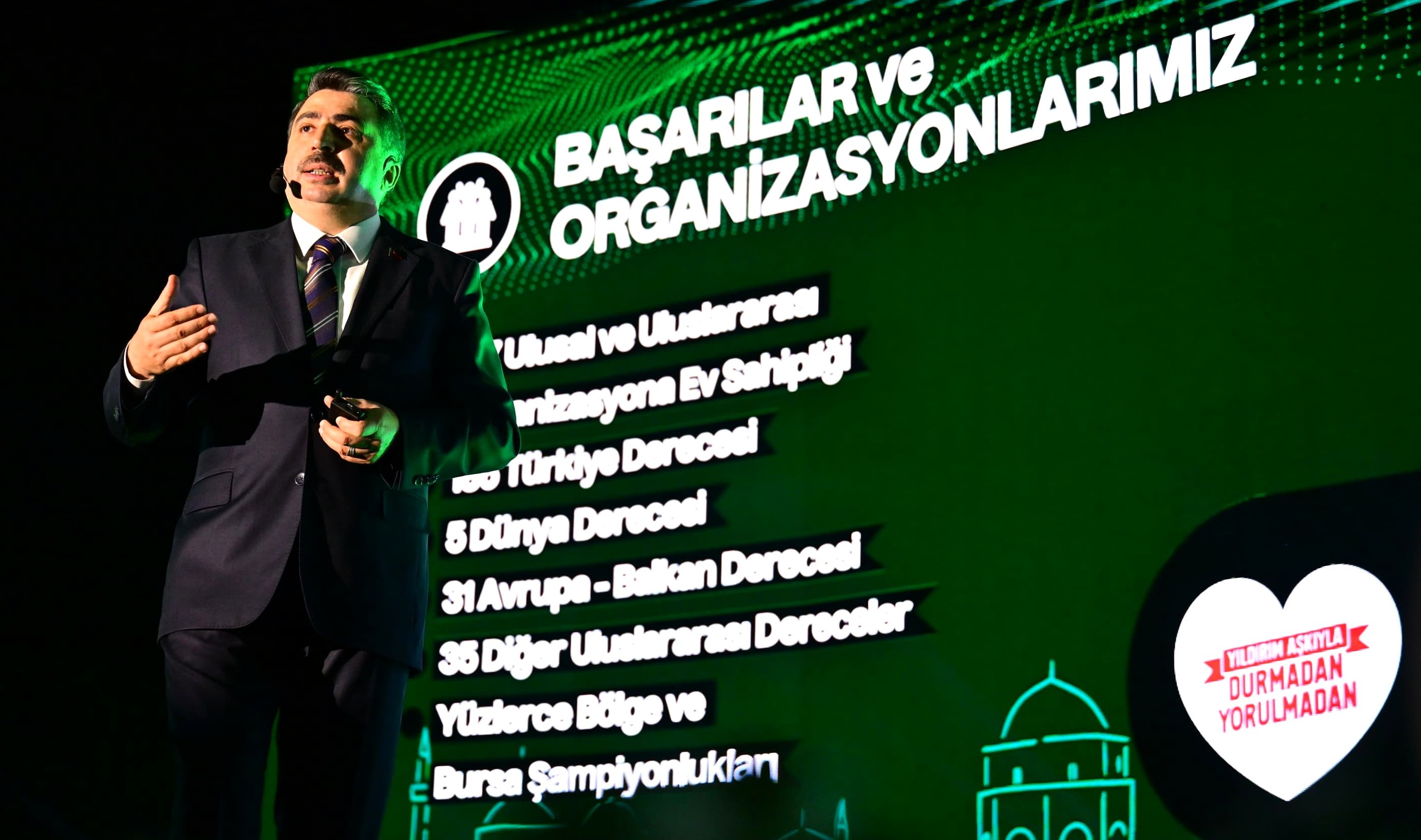 Yıldırım’ın tüm kimliklerinin yanında bir de spor kenti kimliği olduğunu belirten Başkan Oktay Yılmaz, “Yıldırım’da 7’den 77’ye herkesin spor imkanına sahip olmasını istiyoruz ve bu doğrultuda çalışıyoruz. Sadece 2025 yılında, 13 tesis 20 farklı branşta 86 bin 880 vatandaşımıza spor hizmeti verdik. Yaz spor okullarında 62 binden fazla çocuğumuza spor eğitim hizmeti sağladık. Bugün Yıldırım’daki spor tesislerimiz tüm Bursa’ya hizmet vermektedir. Spora verdiğimiz destek ve yatırımlarımızın meyvelerini de alıyoruz. Bugüne kadar 129 ulusal ve uluslararası organizasyona ev sahipliği yaptık. Sporcularımız 186 Türkiye derecesi, 5 dünya derecesi, 35 Avrupa- Balkan derecesi- 35 farklı uluslararası derece ve yüzlerce bölge ve Bursa derecesi elde etti.” ifadelerini kullandı.