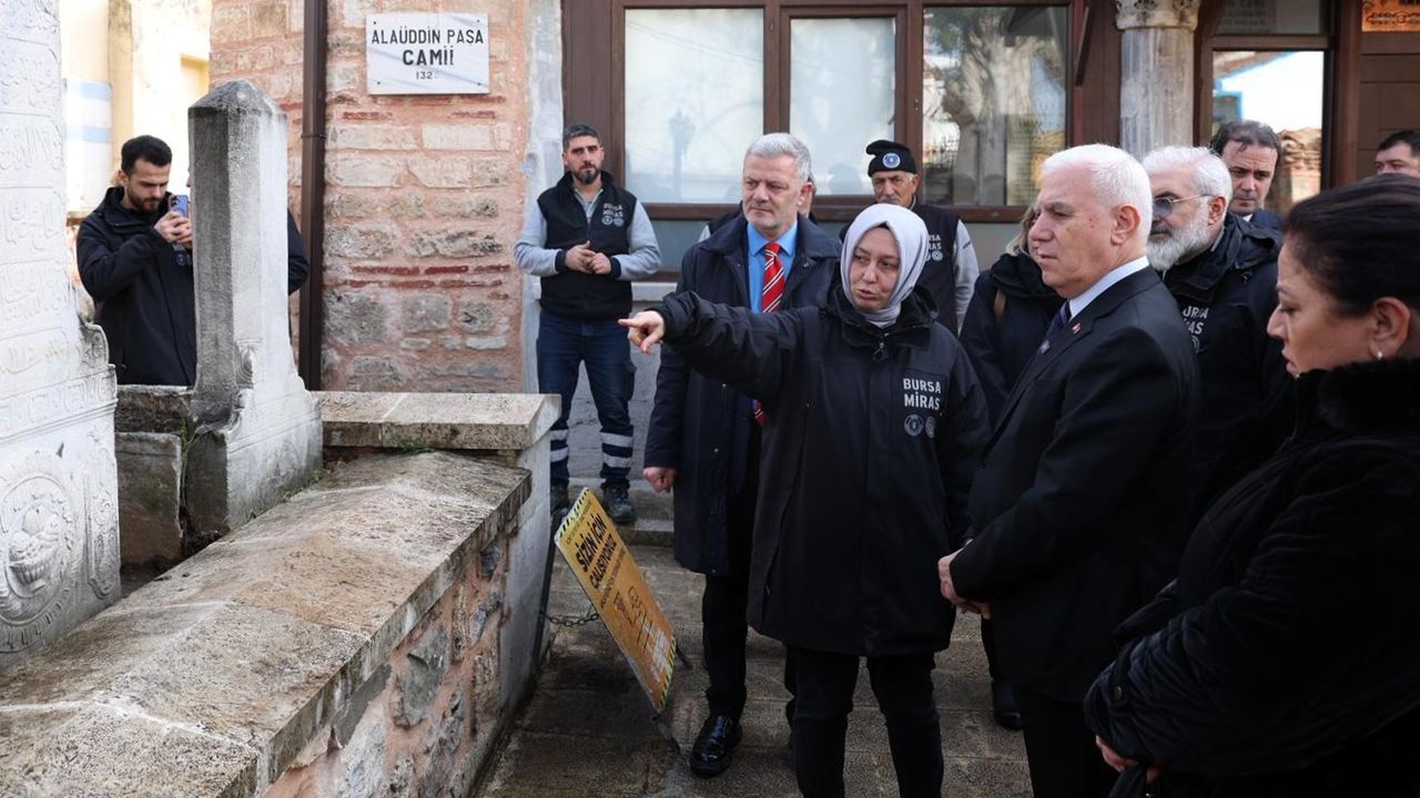 Bursa Büyükşehir Belediye Başkanı Mustafa Bozbey de Alaüddin Paşa Camii’ni ziyaret ederek çalışmaları yerinde inceledi. Günümüzden tam 700 yıl önce Bursa’nın fethinin ardından inşa edilen caminin Bursa tarihi açısından büyük önem taşıdığını söyleyen Başkan Mustafa Bozbey, “Gerçekleştirdiğimiz uygulamayla hazireyi olduğu gibi ortaya çıkardık. Arkadaşlarımız yoğun bir çalışma yürüttü. Alanda dönemin önemli insanlarının mezarları da bulunuyor. Hem büyüklerin hem de çocukların mezarları var. Bu kıymetli mezar taşları caminin haziresinde yeniden gün yüzüne çıkarıldı.” dedi.