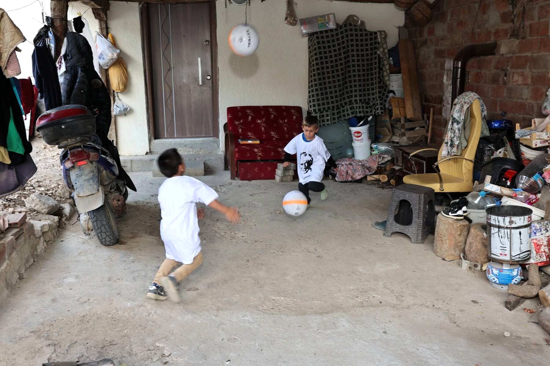 Çocuklar da aldıkları futbol topuyla oynayarak hediyelerin keyfini çıkardı.