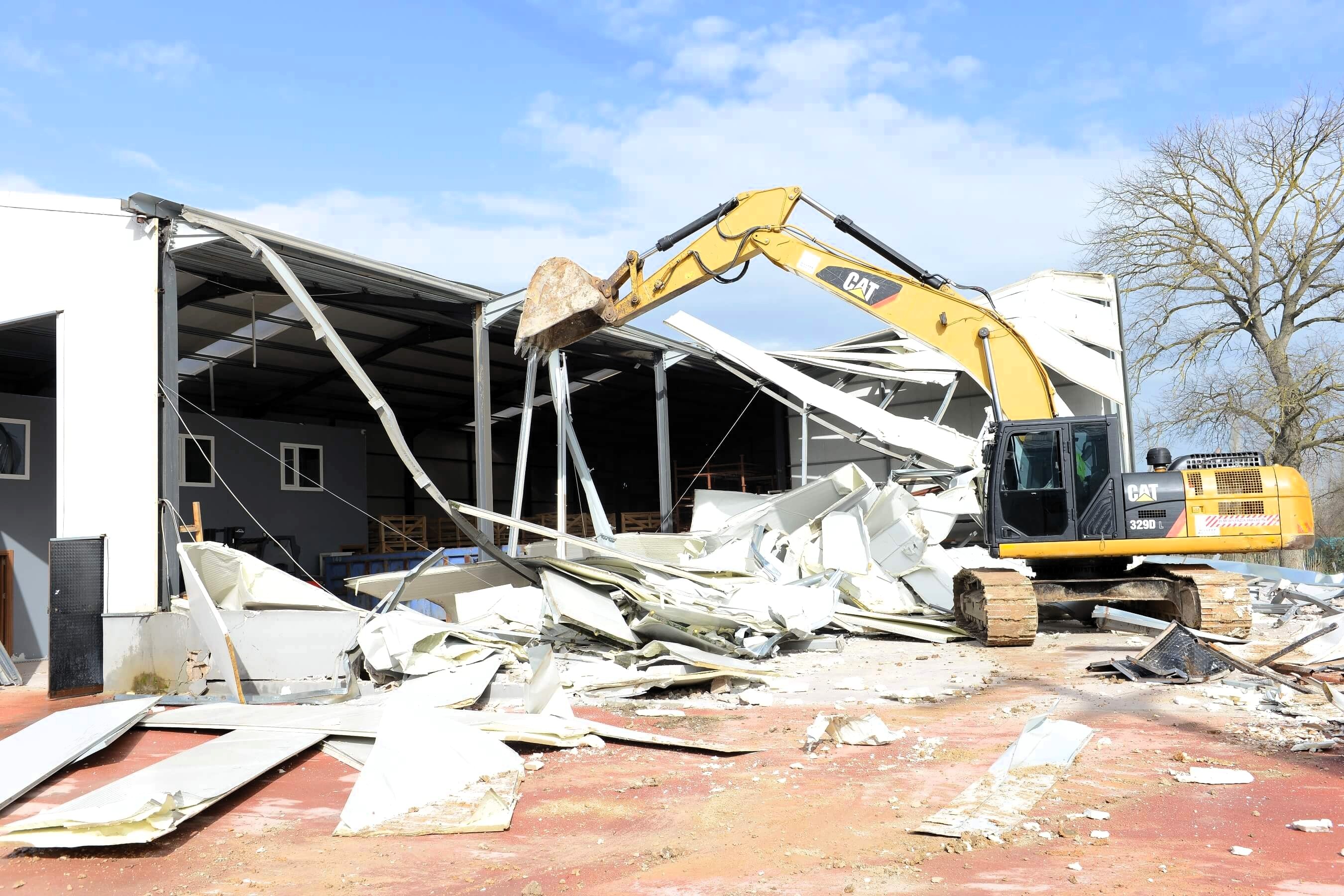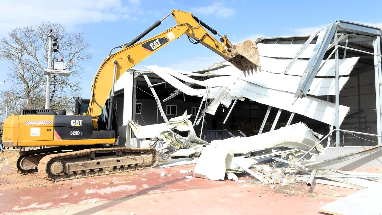 Malzemelerin zarar görmemesi için alınan önlemlerin ardından iş makineleri devreye girdi ve yapının yıkımı gerçekleştirildi.