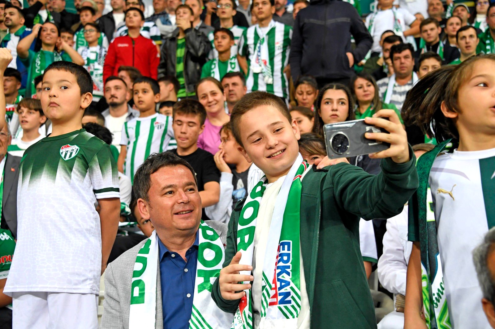 Osmangazi Belediye Başkanı Erkan Aydın, karşılaşmayı çocuklarla birlikte tribünden takip ederek heyecana ortak oldu.