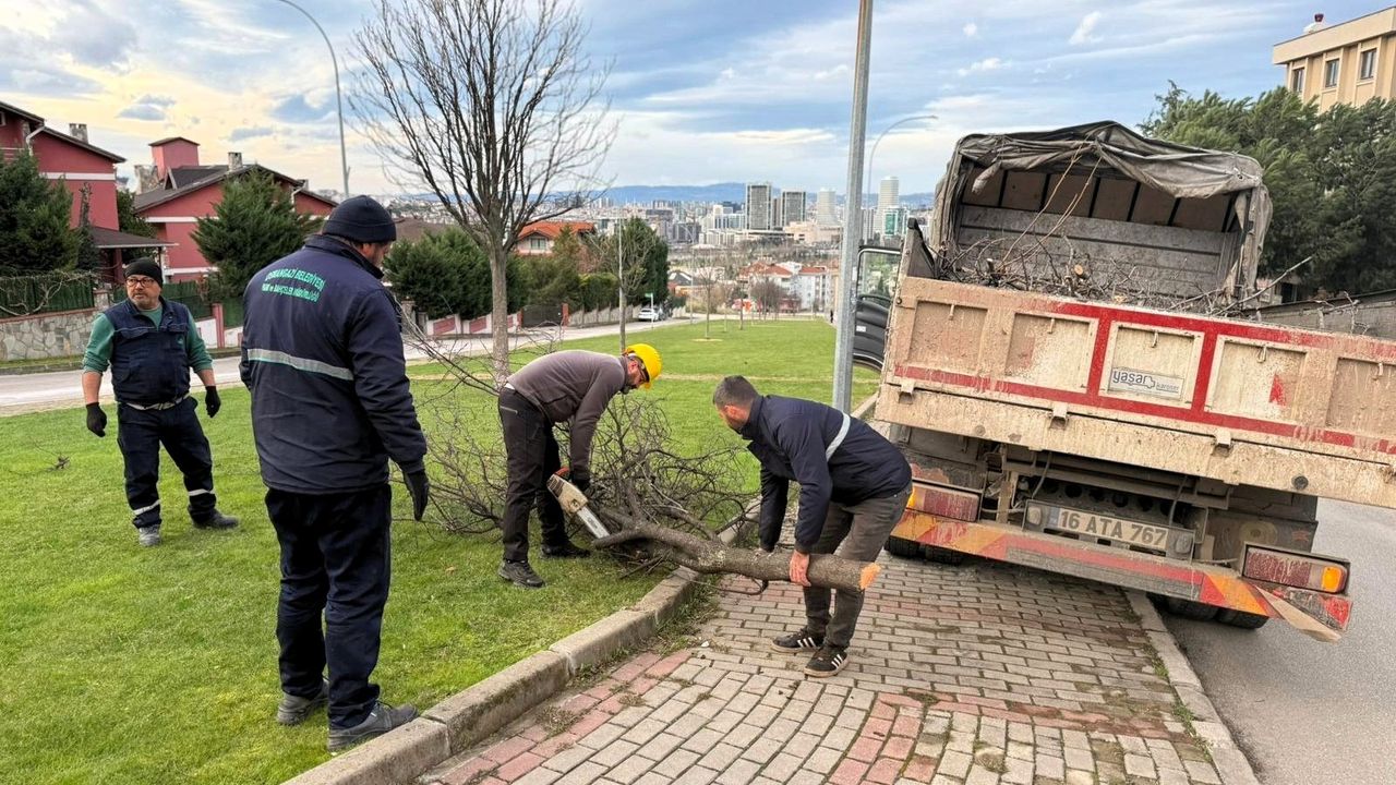 Şiddetli lodosun etkisiyle yol, park ve araçların üzerine devrilen ağaçlar için Osmangazi Belediyesi ekipleri harekete geçti.