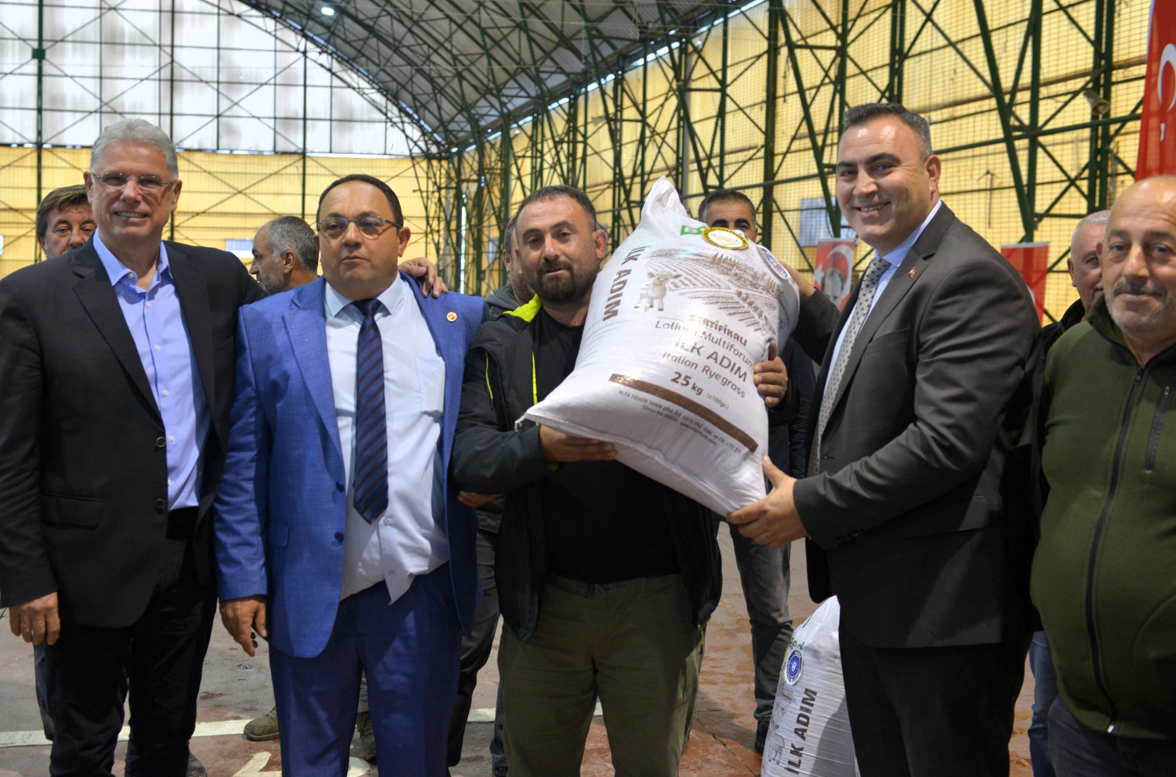 Dağıtım töreninde konuşan Büyükşehir Belediyesi Başkanvekili Mehmet Aydın Saldız, dağıtımı yapılan çim tohumlarının üreticilere can suyu olacağını söyledi.