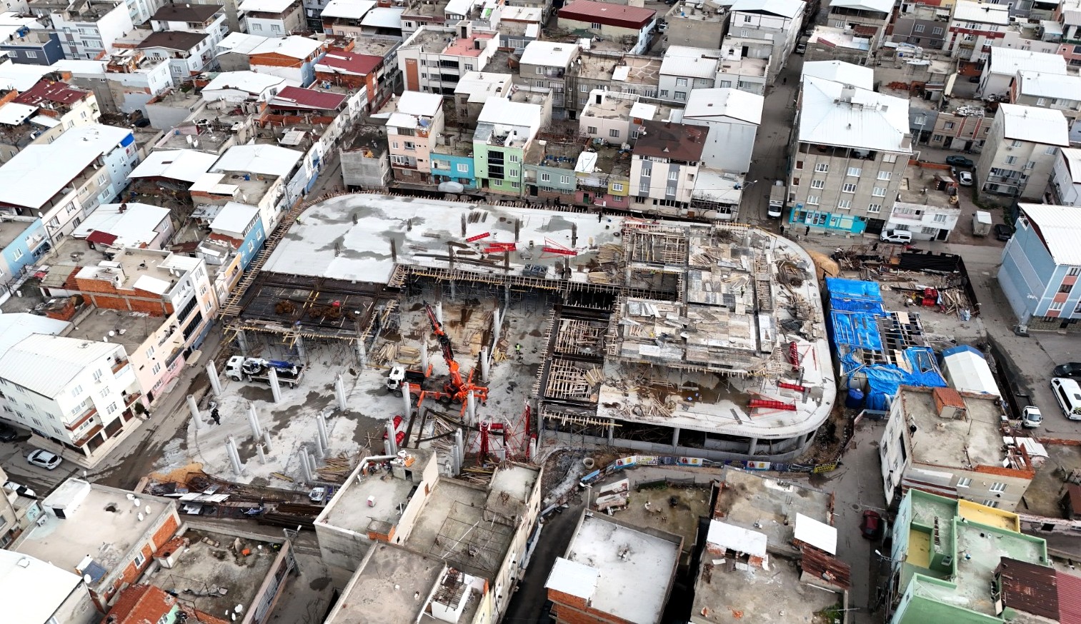 Yıkılan pazar alanının yerinde, 4 bin 500 metrekare taban alanı üzerine, 7 bin 200 metrekare inşaat alanına sahip olacak yapı, zemin üstü bir kat olarak inşa ediliyor.