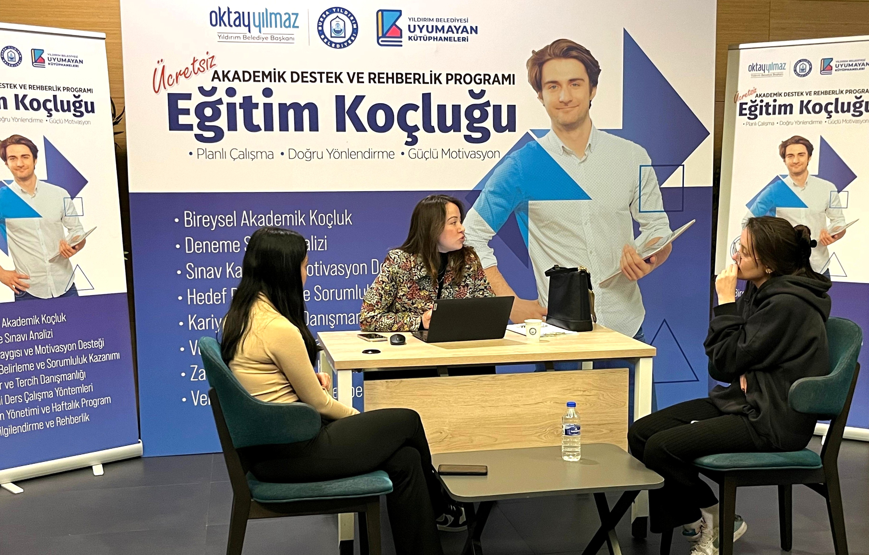 Yıldırım Belediyesi’ne bağlı Mümine Şeremet Uyumayan Kütüphanesi, Mimar Sinan Uyumayan Kütüphanesi, Dr. Sadık Ahmet Kütüphanesi, Karapınar Yıldırım Gençlik Kütüphanesi’nde verilen ‘Akademik Destek ve Rehberlik Programı Eğitim Koçluğu’ projesi kapsamında öğrencilere; Bireysel Akademik Koçluk, Deneme Sınavı Analizi, Sınav Kaygısı ve Motivasyon Desteği, Hedef Belirleme ve Sorumluluk Kazanımı, Verimli Ders Çalışma Yöntemleri, Kariyer ve Tercih Danışmanlığı, Veli Bilgilendirme ve Rehberlik konularında destek sağlanıyor.